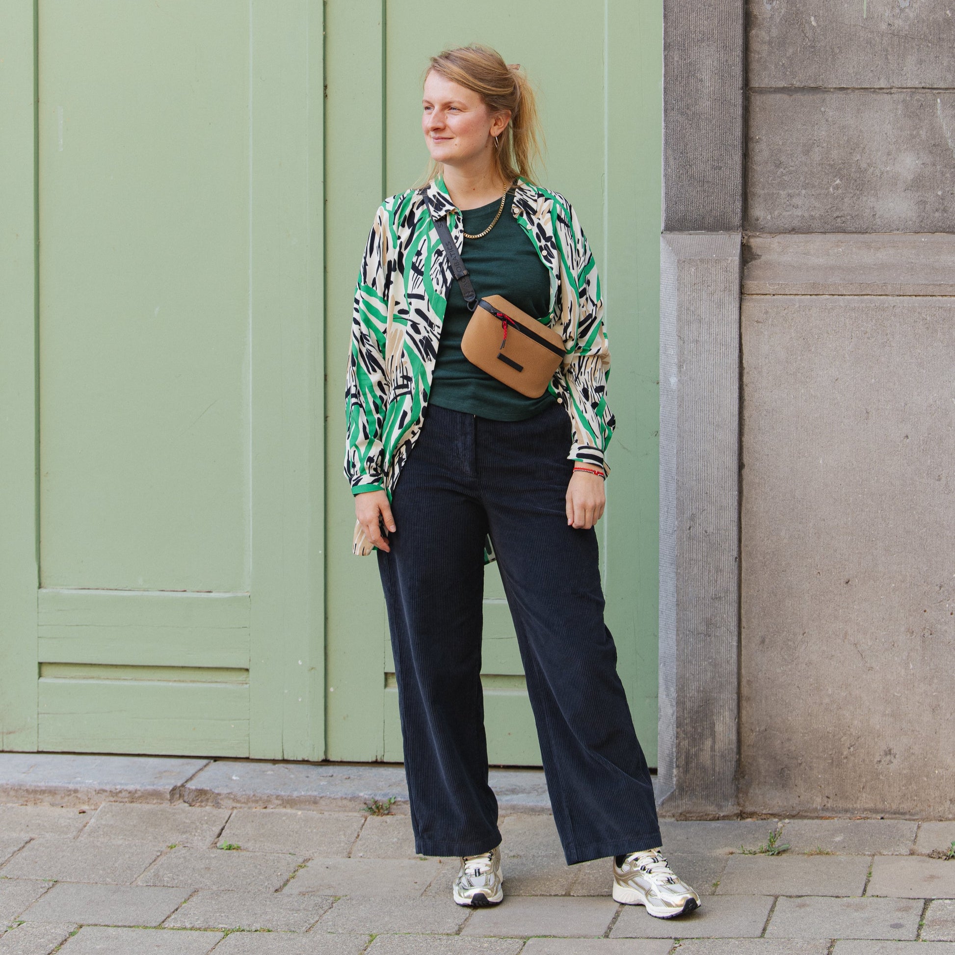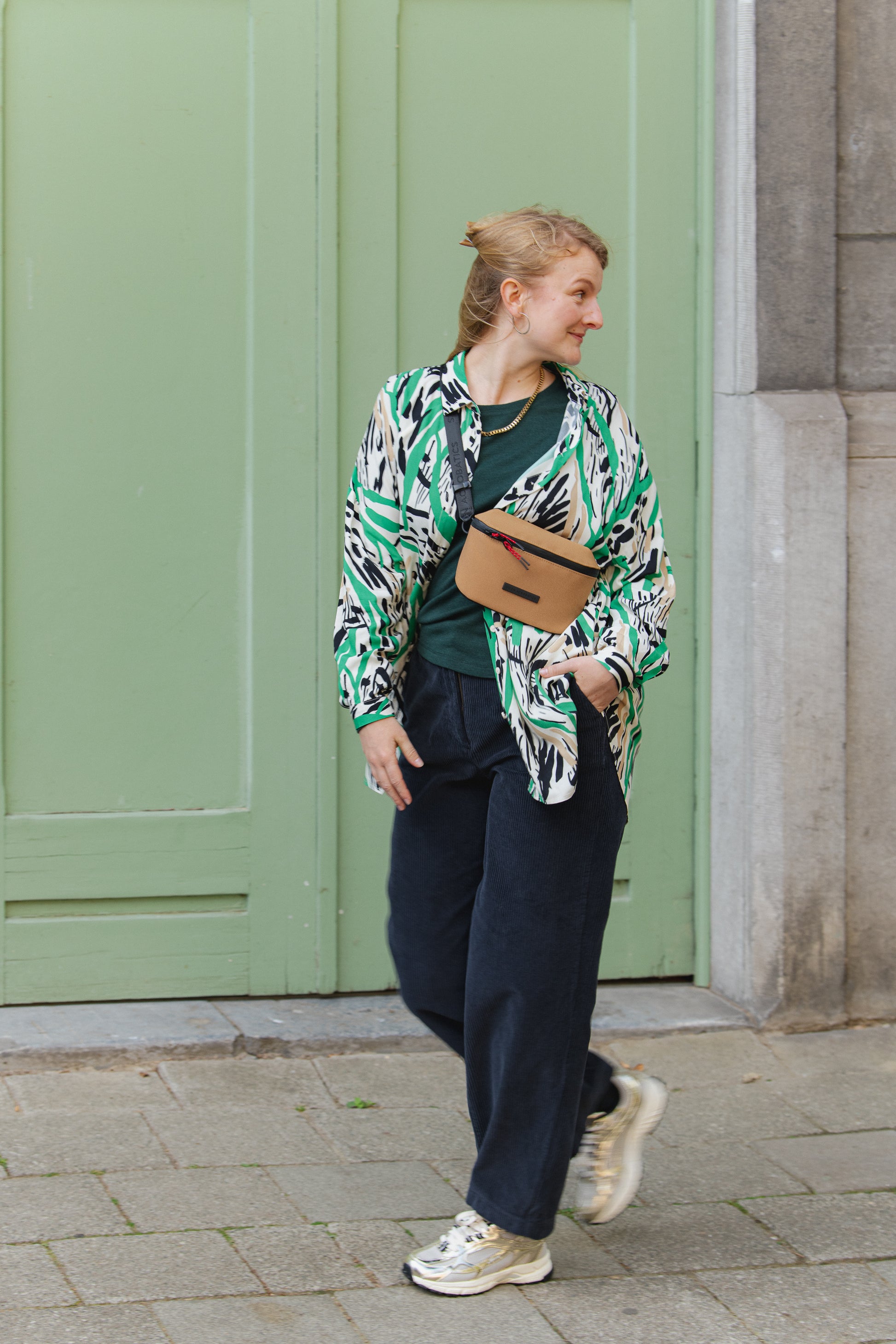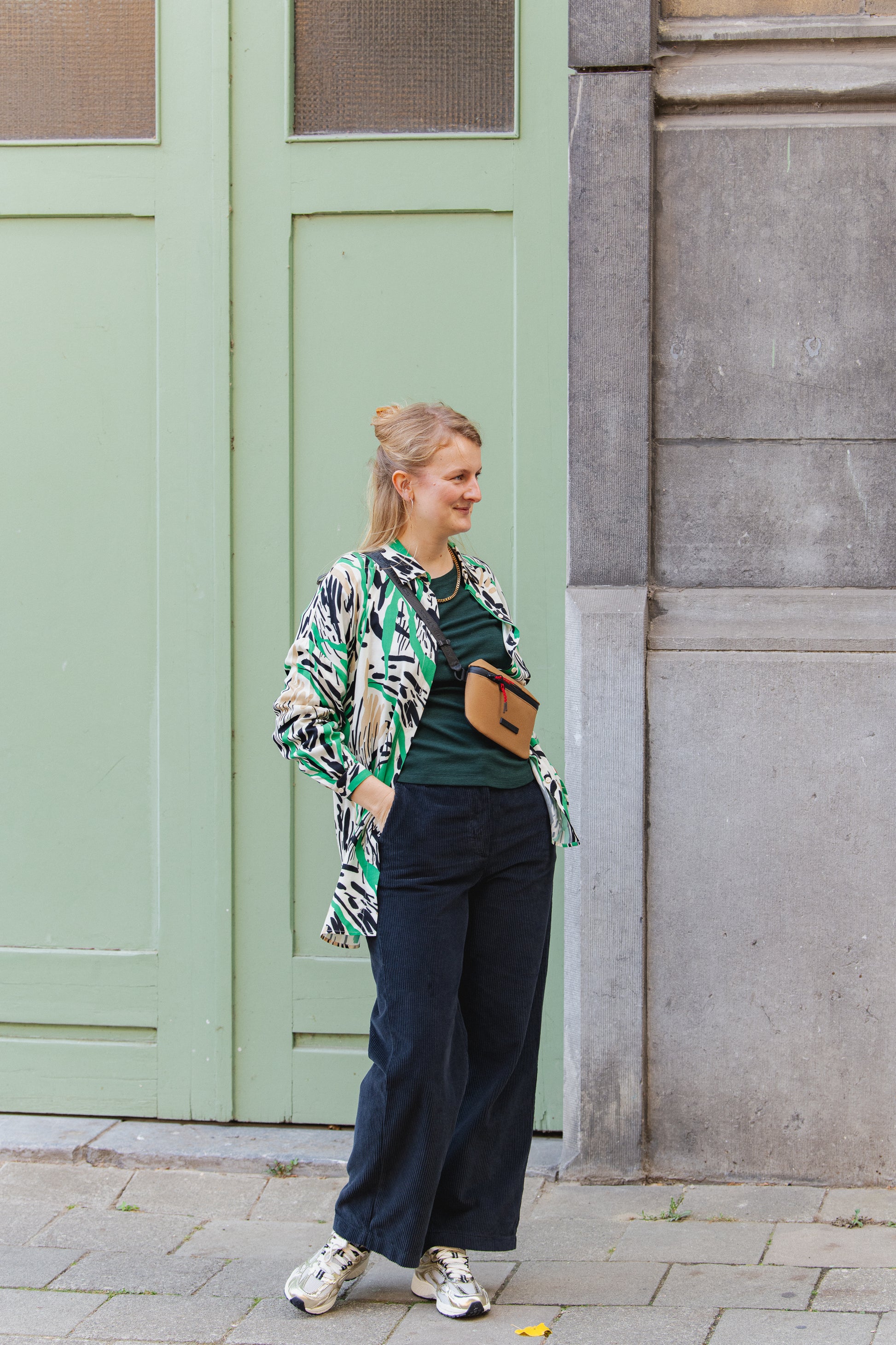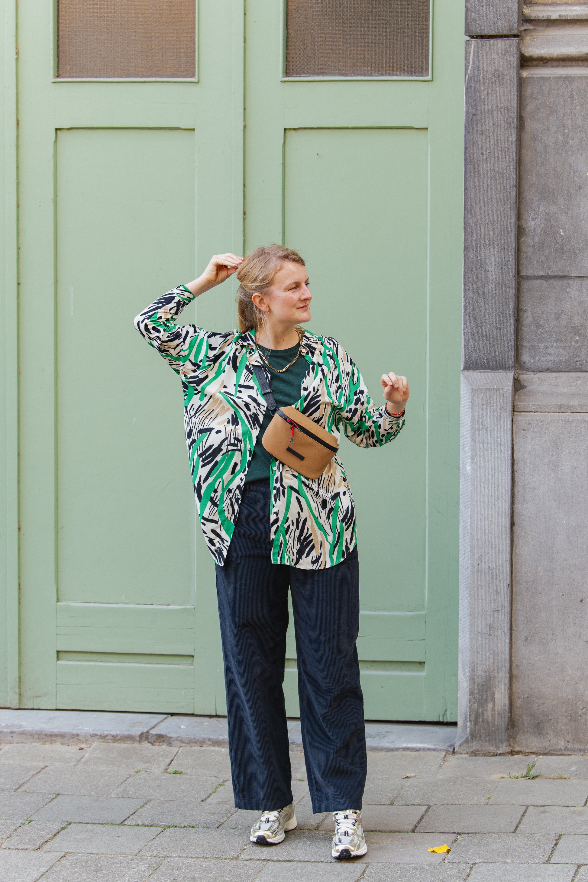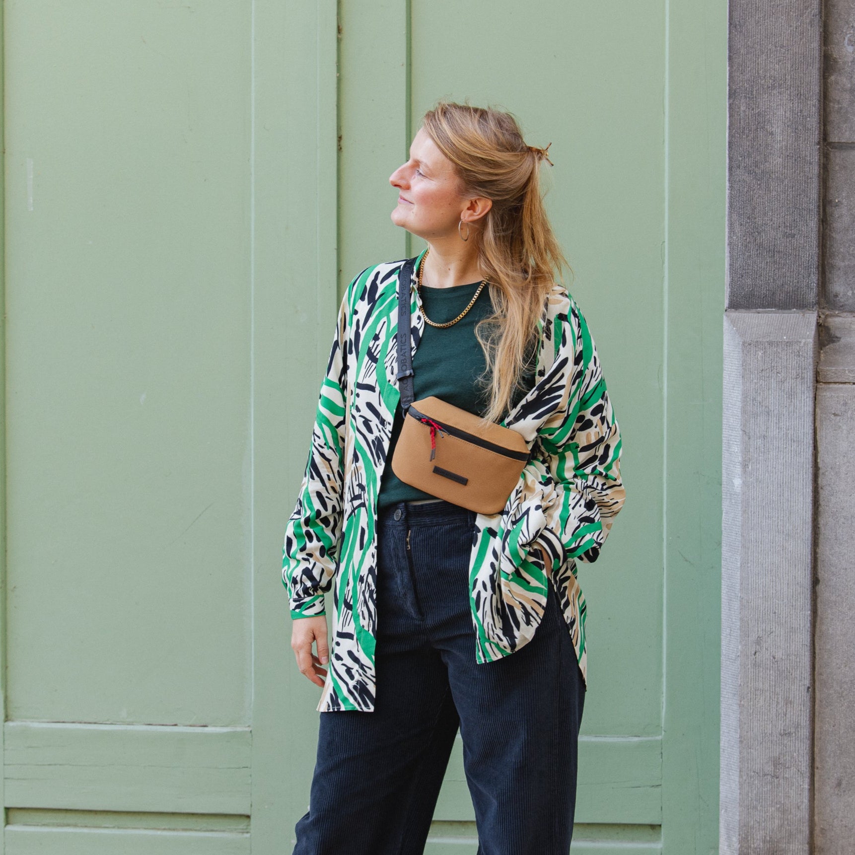 Long, loose-fitting shirt. Classic collar and raglan sleeves, button front and side pockets. Wear open or closed!
