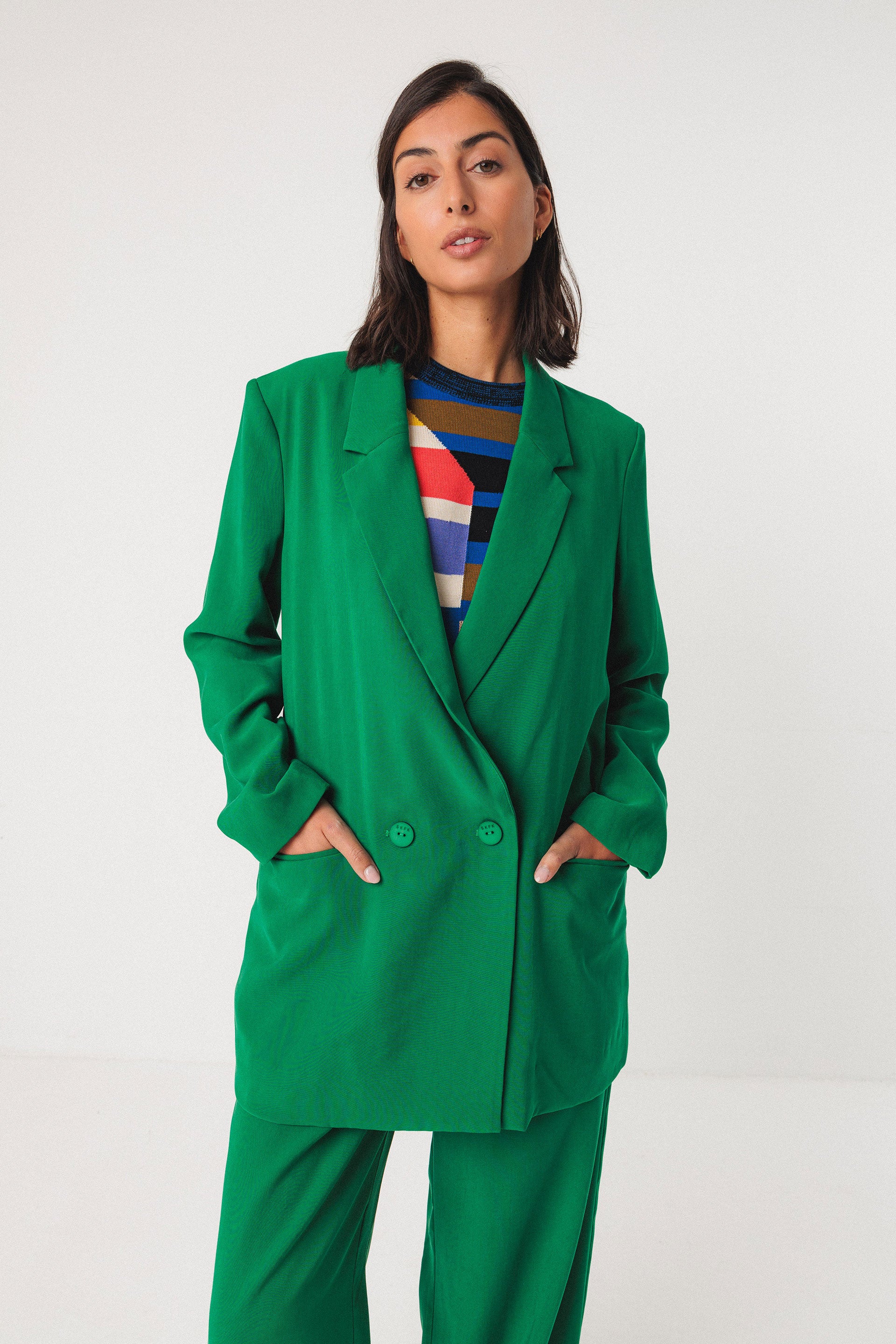 An SKFK favourite! Long blazer jacket with an elegant lapel collar, long sleeves and a front buttoned fastening. This style is fully lined with a silky fabric. Looks great over jeans or over a festive dress!