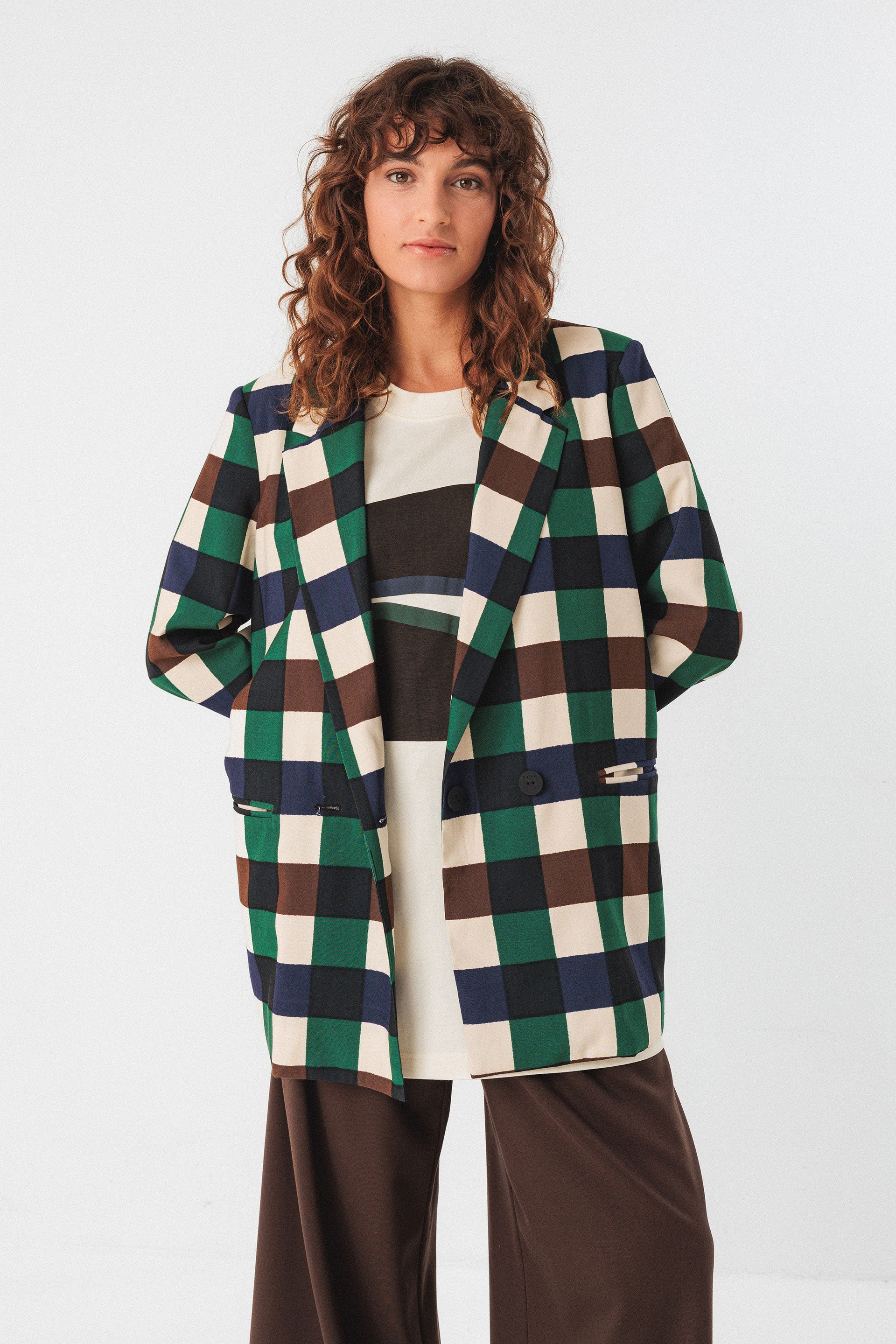 An SKFK favourite! Long blazer jacket with an elegant lapel collar, long sleeves and a front buttoned fastening. This style is fully lined with a silky fabric. Looks great over jeans or over a festive dress!