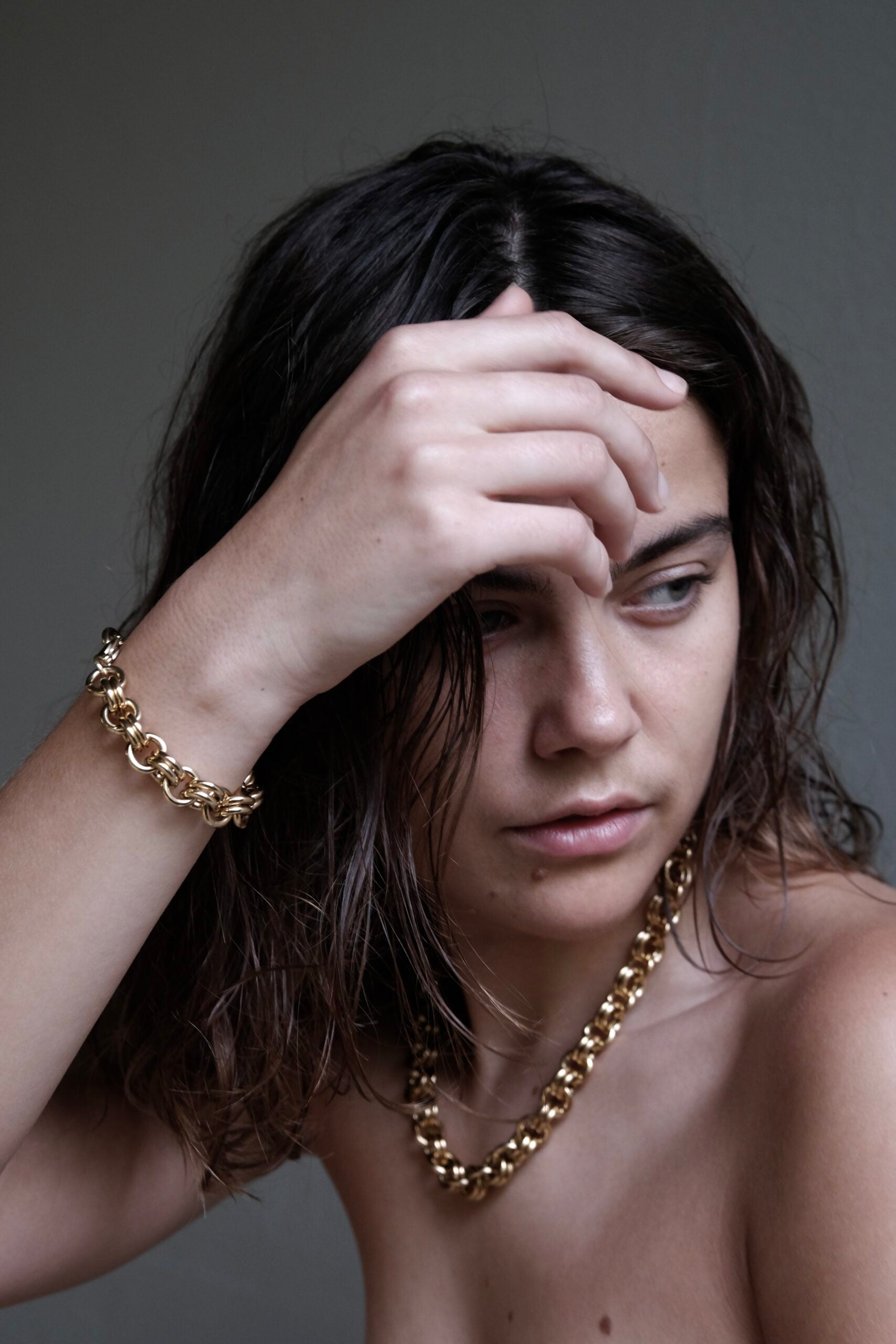 BANDHU jewelry has been produced of stainless steel or stainless steel with 14K gold plating. Viona chose to work with stainless steel because the strength of this material fits the clean and minimalistic designs, it keeps its shine and colour and on top it is allergy free. The plating for BANDHU jewelry is achieved by a vacuum process which is the most environmental friendly process for all plating.