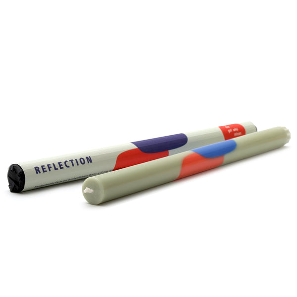 This Reflection candle is made of solid-colored wax - layer by layer of color is poured by hand during its production. Individually packed in a colored cardboard box.