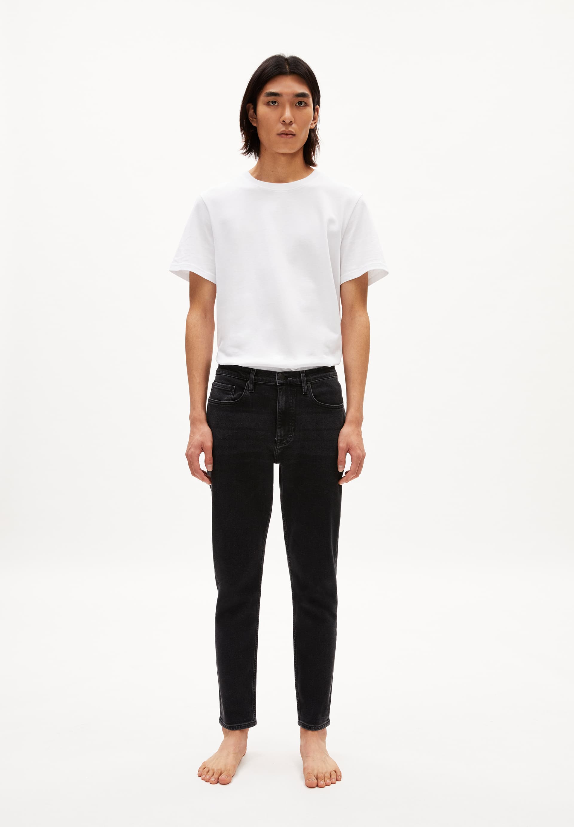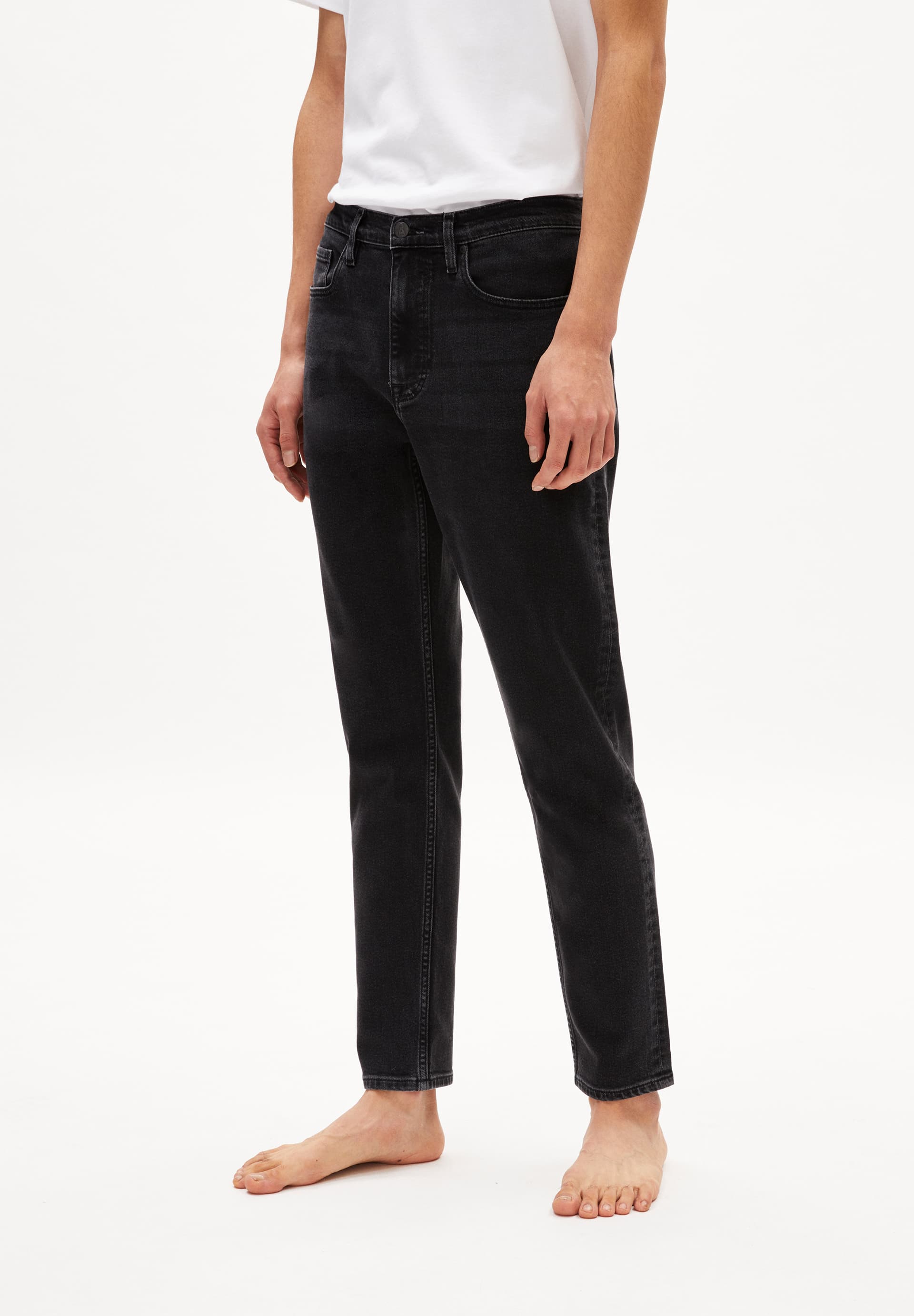 Tapered fit denim in organic cotton.