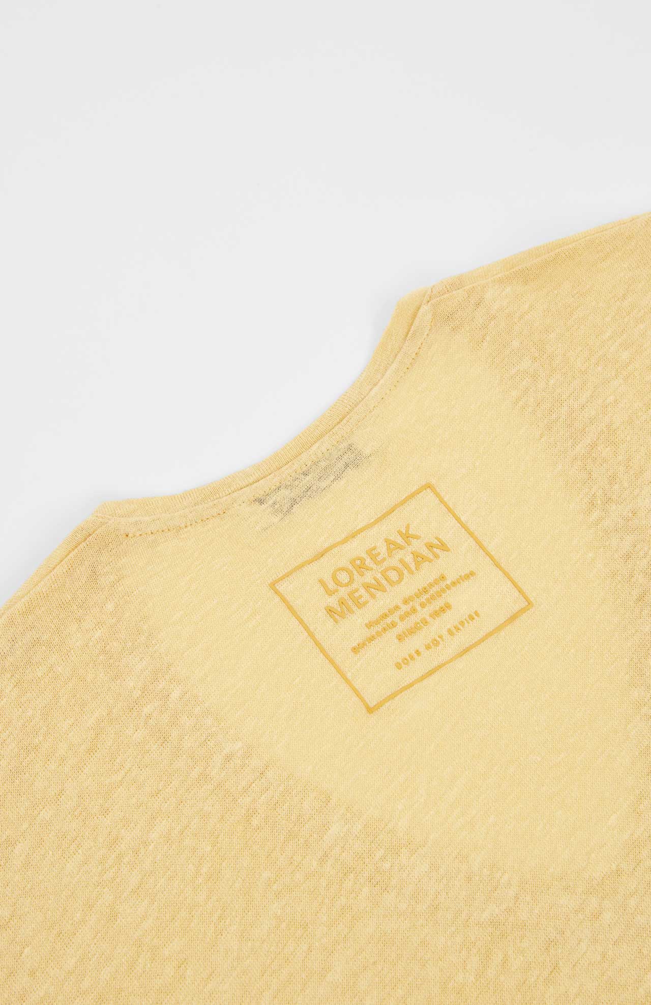 Short-sleeved linen T-shirt with a V-neck. Printed detail on the back.