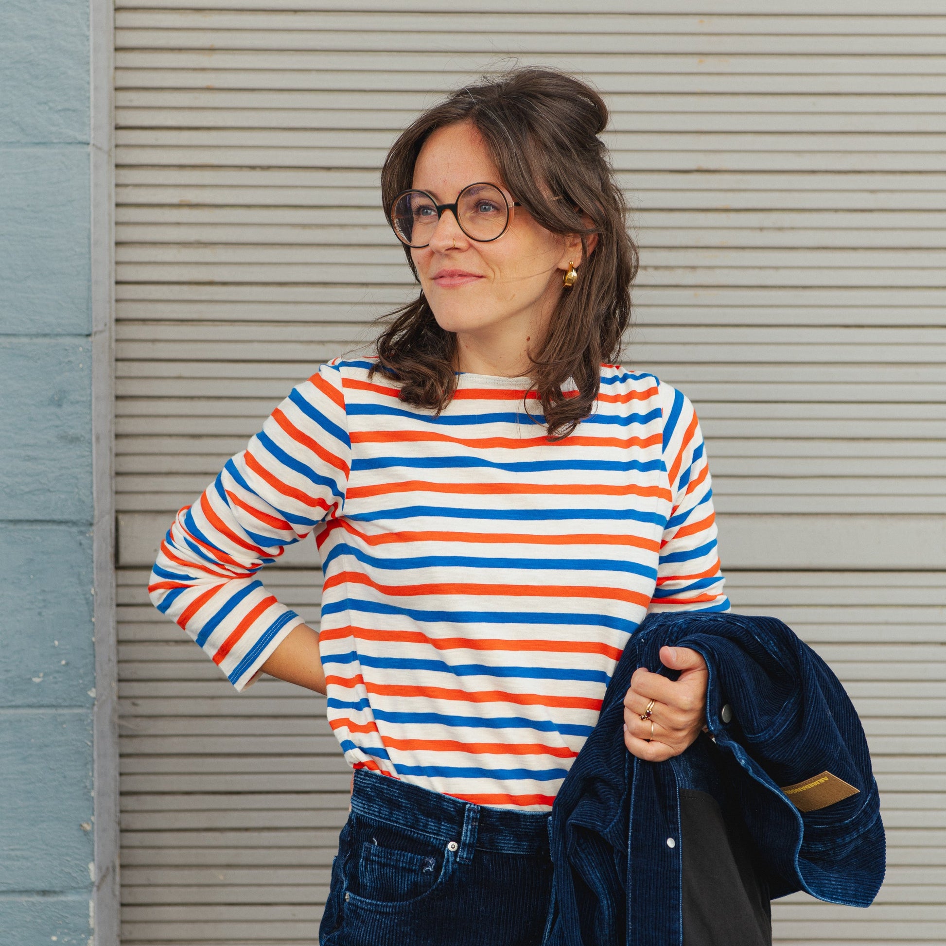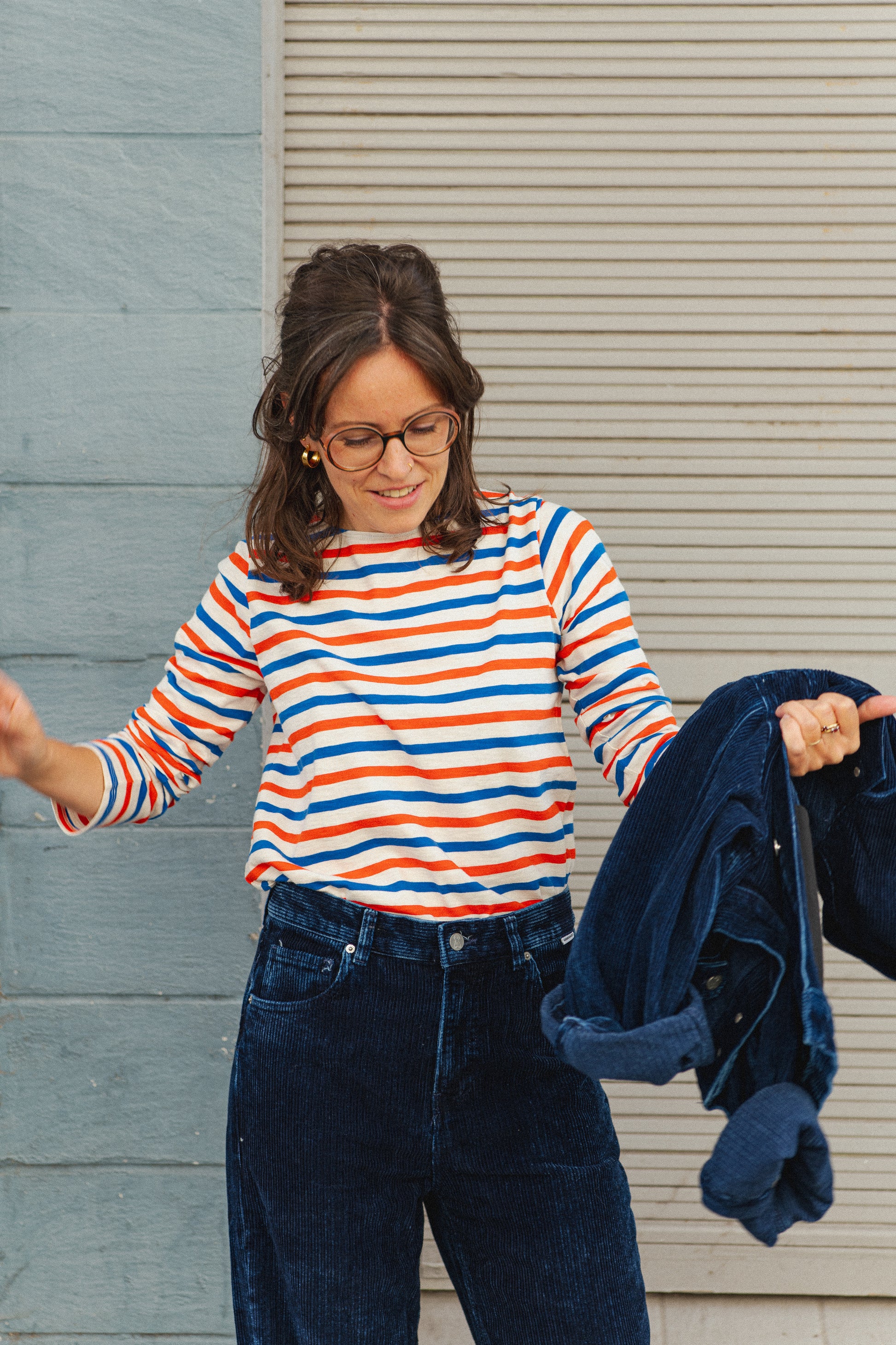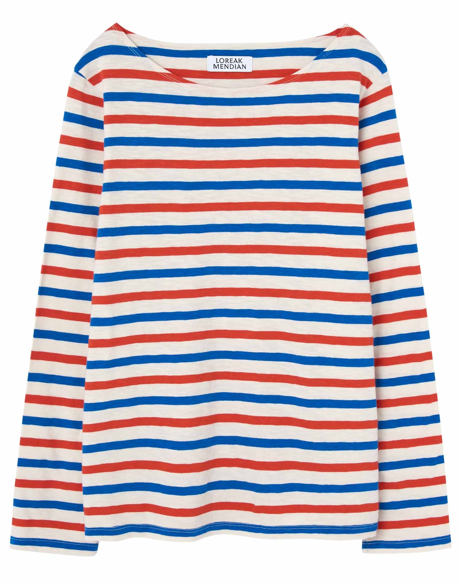 This striped boat neck T-shirt plays with contrasting colours to give your outfits a fun and casual look. Made from organic cotton and with a special detail on the back.