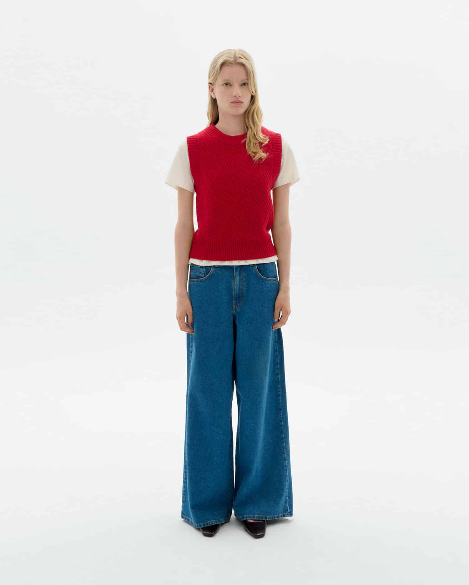 Kaia red wool knitted vest.