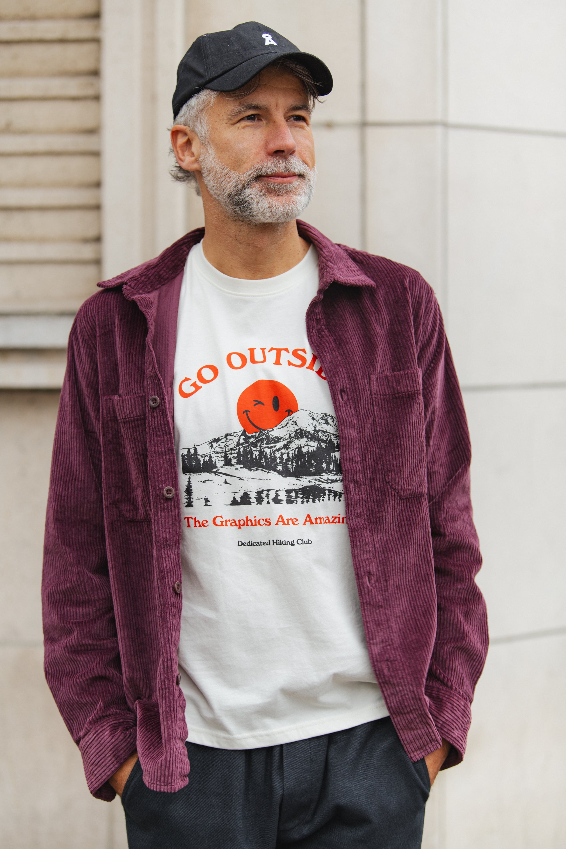 A relaxed overshirt in organic cotton corduroy. Regular shirt collar, two chest pockets. Straight bottom hem.