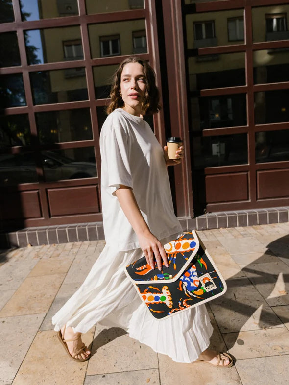 Sourced sustainably, the felt is made for YKRA in Germany. The easy-to-hold envelope form fuses functionality and minimalist design, so you can carry your laptop with you safely, whether in your hands or in your backpack. The snap stud is hidden behind the felt layer, so it never touches your laptop.
