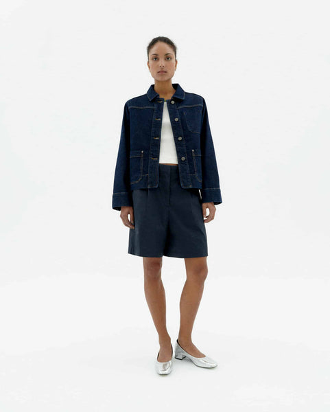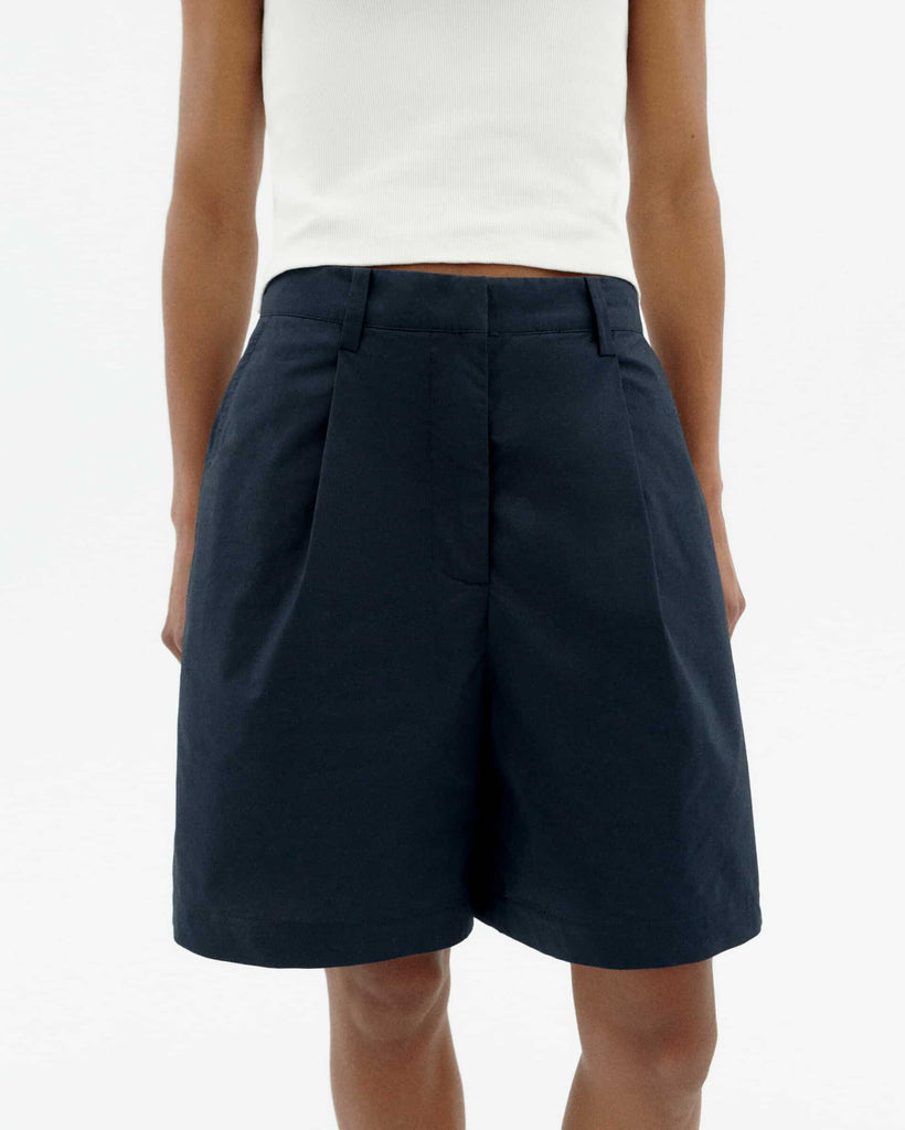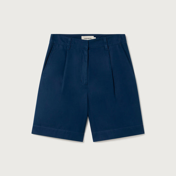 Dark blue Lia shorts made of organic cotton. Sunny color with a very cool texture on the fabric!