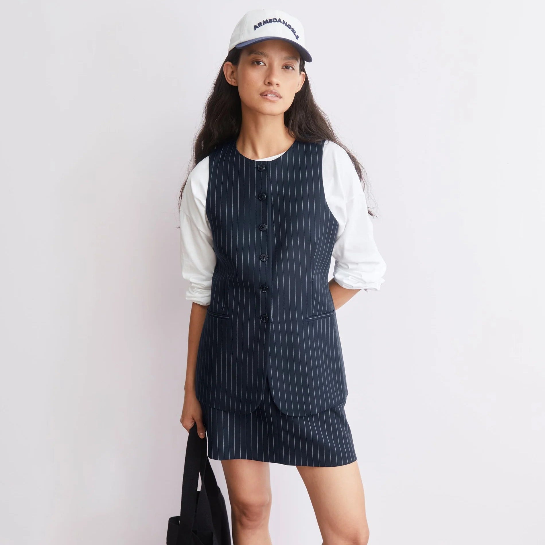 A cool and at the same time very elegant new style: the long vest. Welt pockets complete the look, while the TENCEL™ Lyocell fabric ensures a soft and comfortable wearing feel. Wear with a pair of relaxed denim pants or combine with the matching pants!