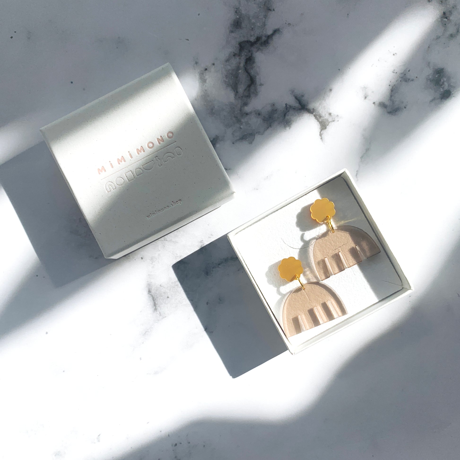 Mimimono makes playfully minimalistic jewelry and accessoires. Lightweight yet bold. All pieces are made from 100% recycled Greencast Acrylic and stainless steel. Everything is thoughtfully designed and lasercut in the Amsterdam studio by founder Hannay Kay, Japan lover and thrifting enthusiast.