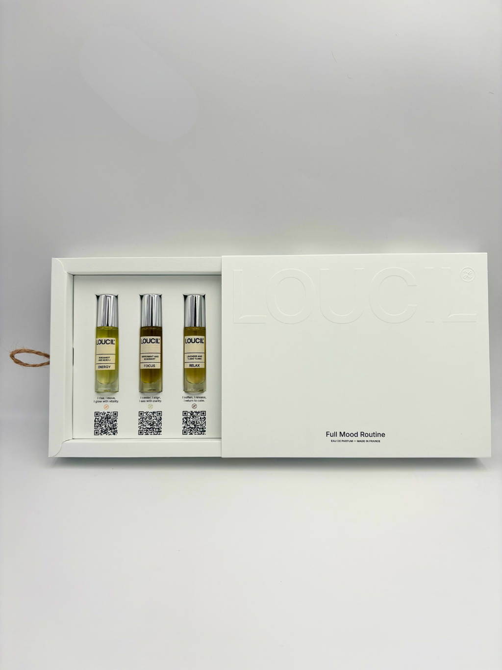 A complete set of three mood boosters - Focus, Relax, and Energy - elegantly boxed in luxury gift packaging.