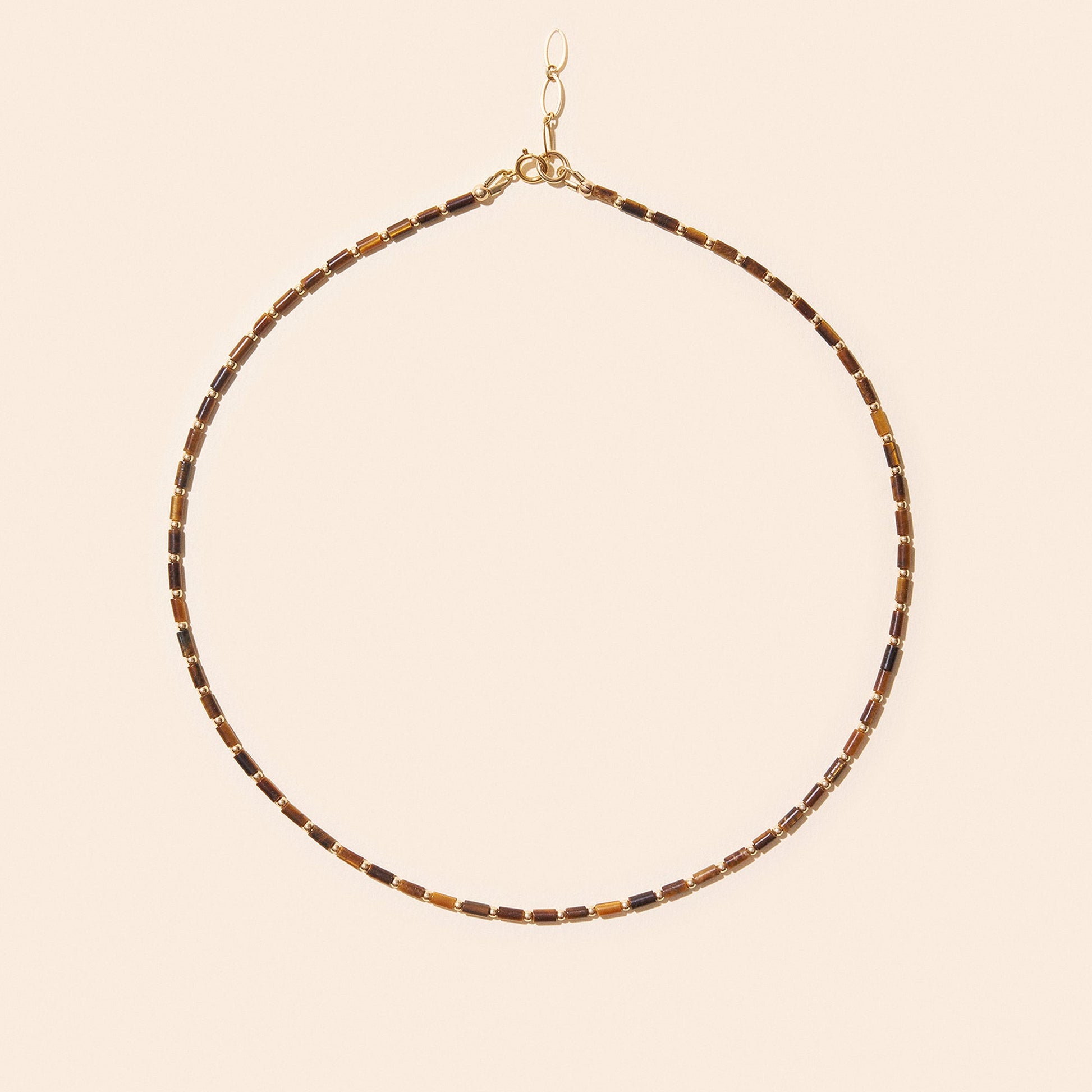 The stunning Baia necklace is composed of tube-shaped natural stones: tiger's eye, linked by fine 14-carat gold-filled beads. It's the perfect finishing touch for every outfit!