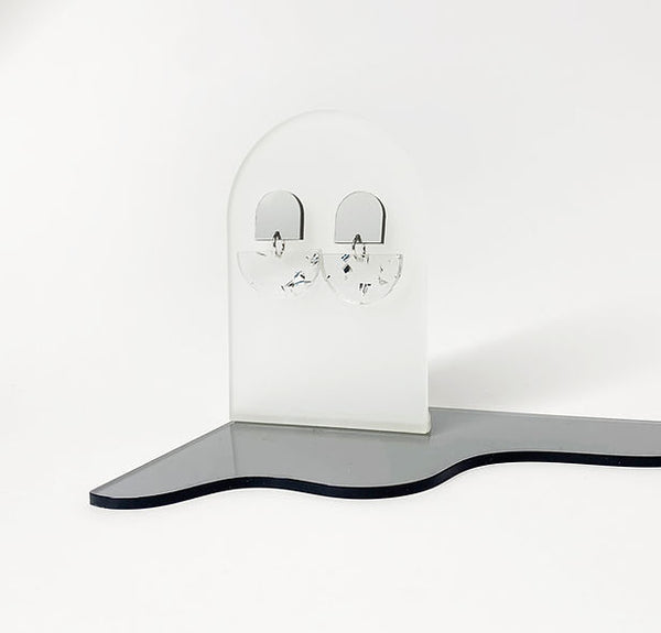 Mimimono makes playfully minimalistic jewelry and accessoires. Lightweight yet bold. All pieces are made from 100% recycled Greencast Acrylic and stainless steel. Everything is thoughtfully designed and lasercut in the Amsterdam studio by founder Hannay Kay, Japan lover and thrifting enthusiast.