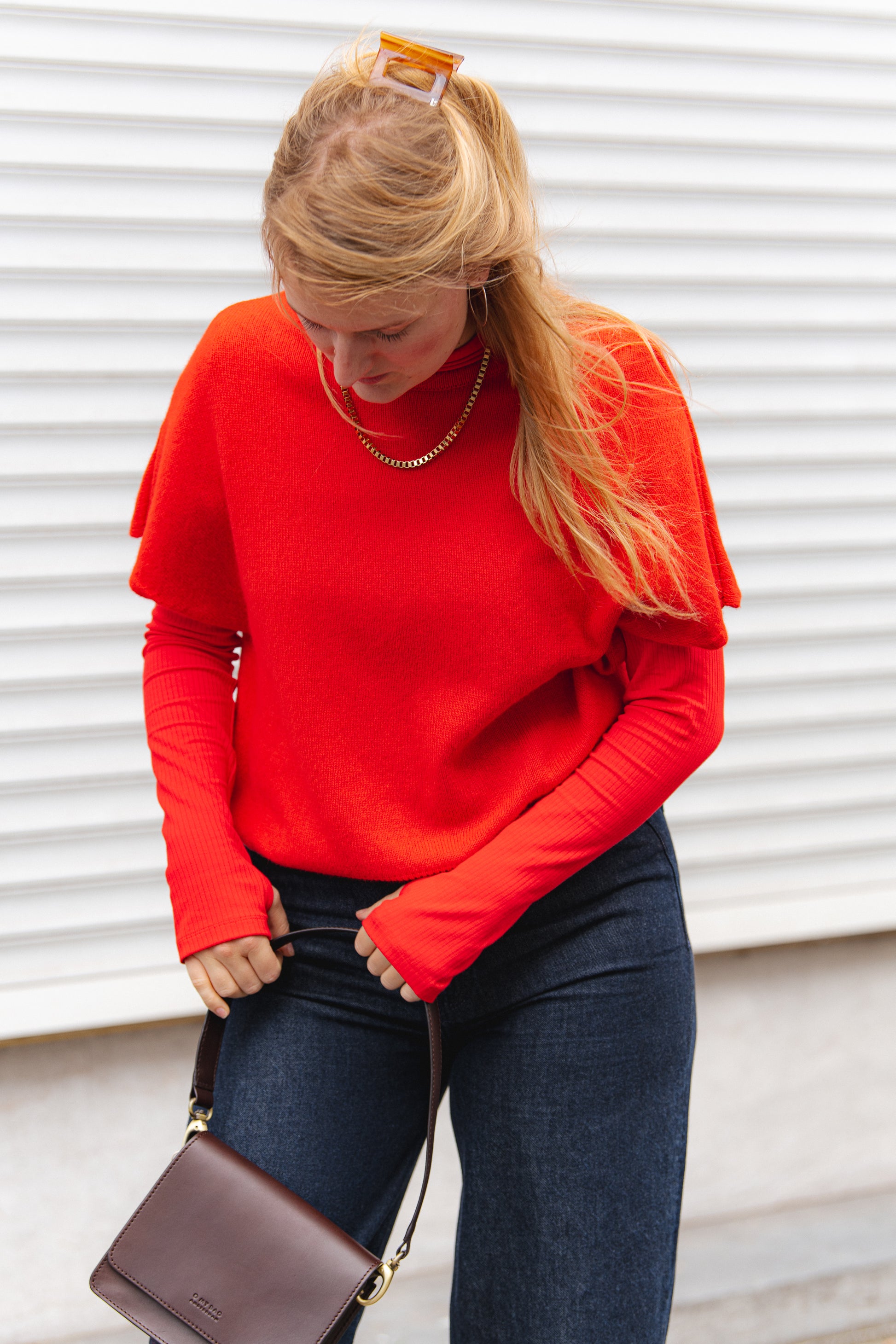 A versatile essential with a modern touch: the straight, boxy silhouette with dropped shoulders creates a contemporary look and is easy to combine – whether layered over blouses, shirts, or fine turtleneck knits.