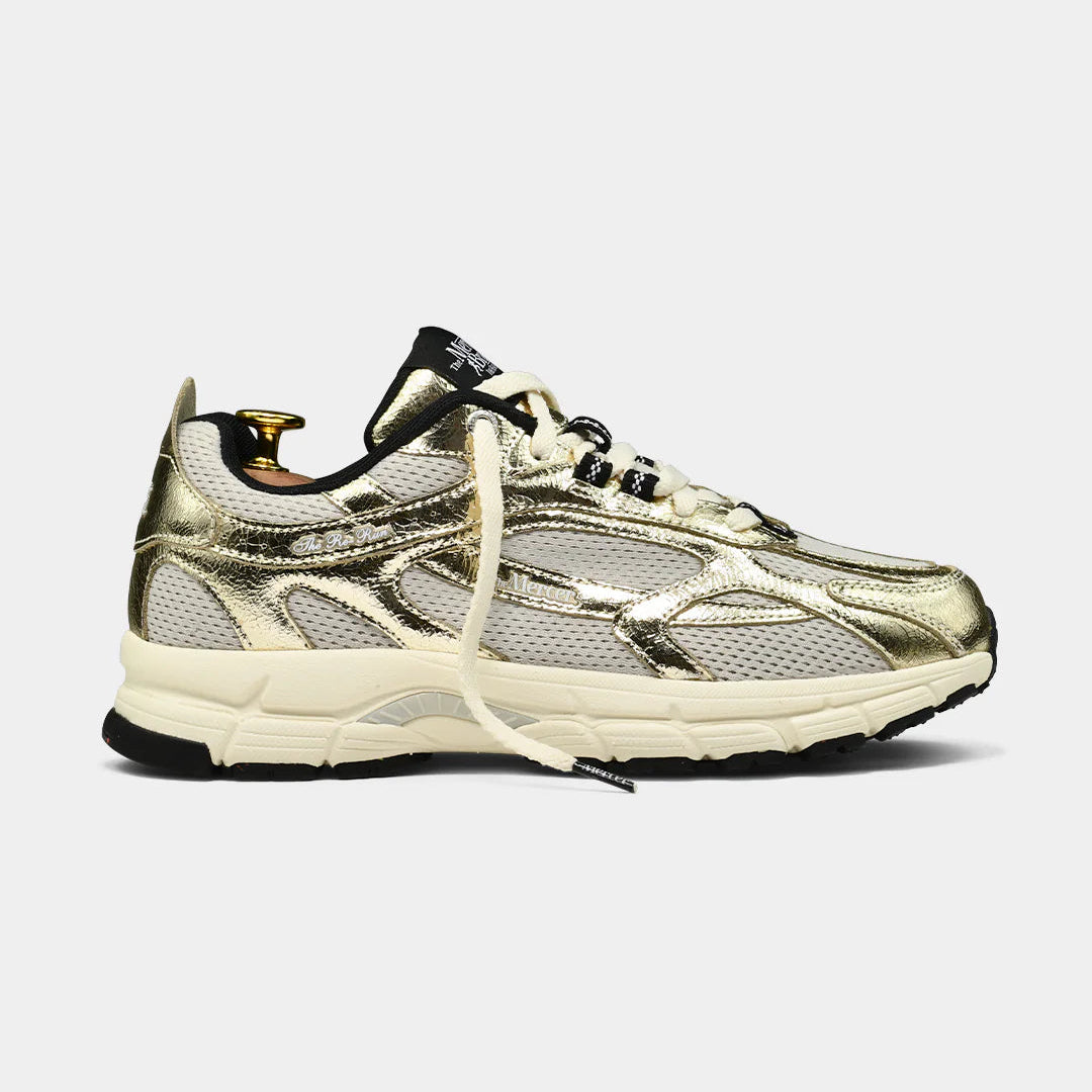 The Re-Run Cracked - crafted from premium, supple, crackled nappa leather with a metallic effect. Available in five shades. It features subtle open-worked mesh for a sporty yet chic look, and flat organic cotton laces. Its strength lies in the balance between the vintage yet sporty and modern look and feel that The Mercer Brand is known for.