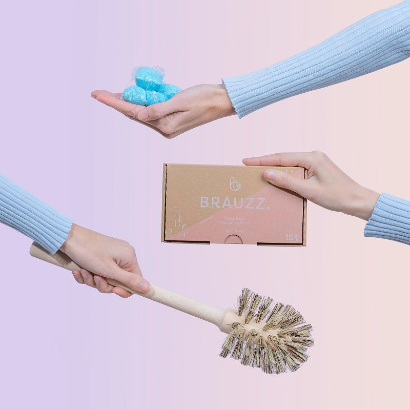 Clean your toilet completely plastic-free with the Brauzz toilet cleaner. Achieve a hygienically clean and shiny toilet with this unique combination of power and durability.