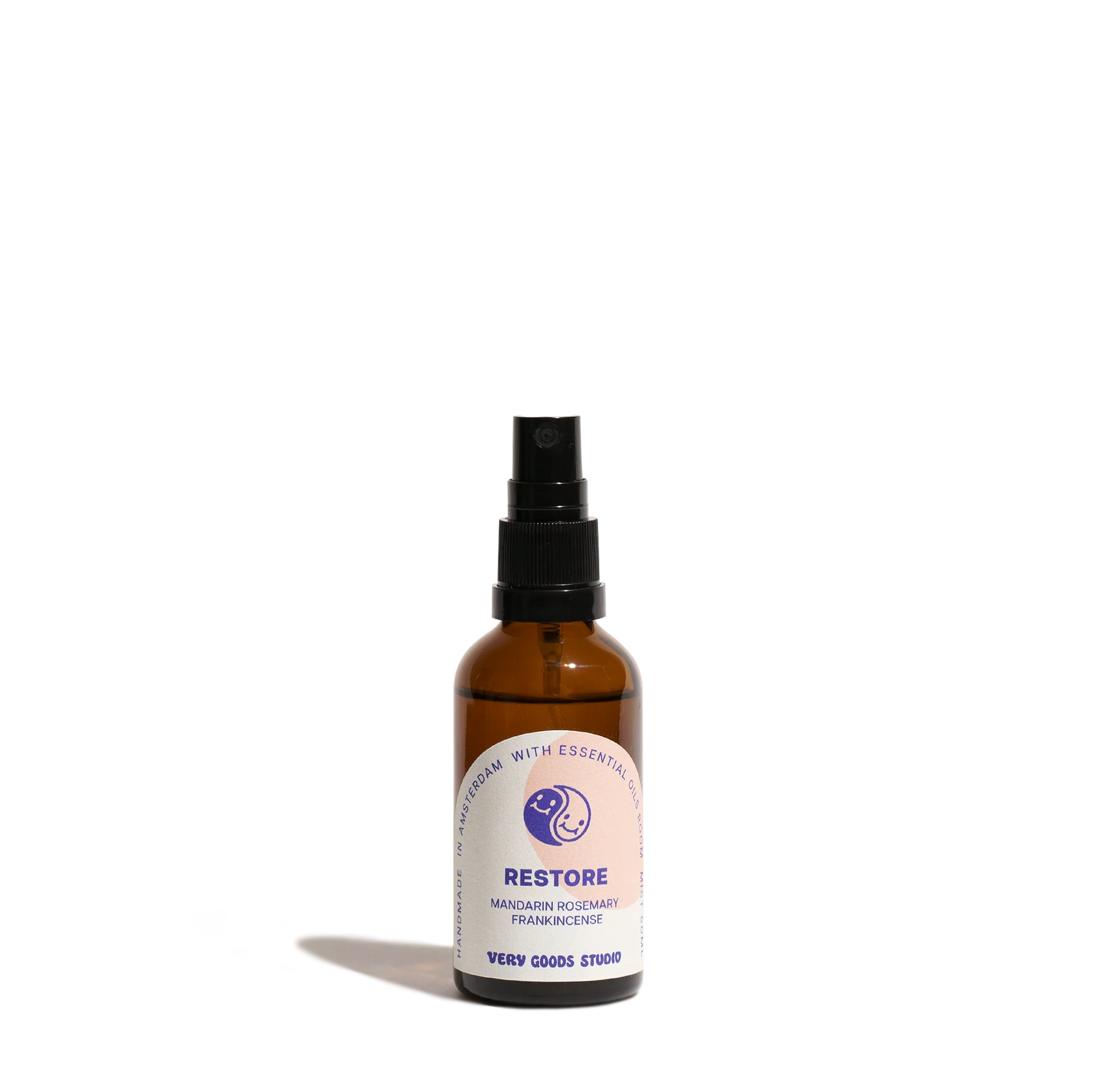 This essential oil blend is designed to clear your mind and uplift your mood. With its fresh and citrusy notes of green mandarin, herbaceous and cleansing rosemary, stress reducing frankincense and sweet/floral neroli, Restore will bring refreshment to your day with just a few sprays.
